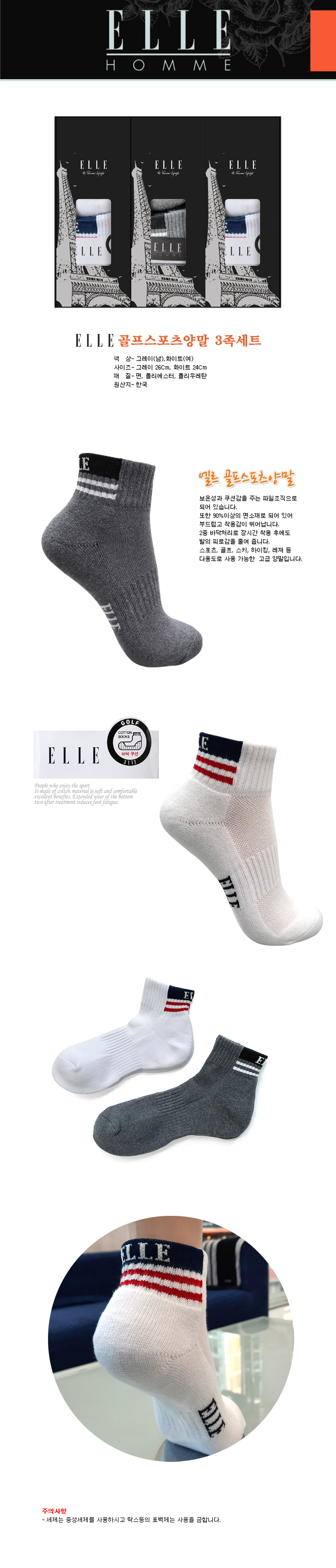 [엘르] 골프스포츠양말 3족세트