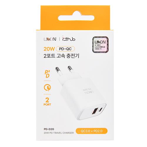 [LAAON] 20W 2port PD+USB 초고속 충전기 PD-D20