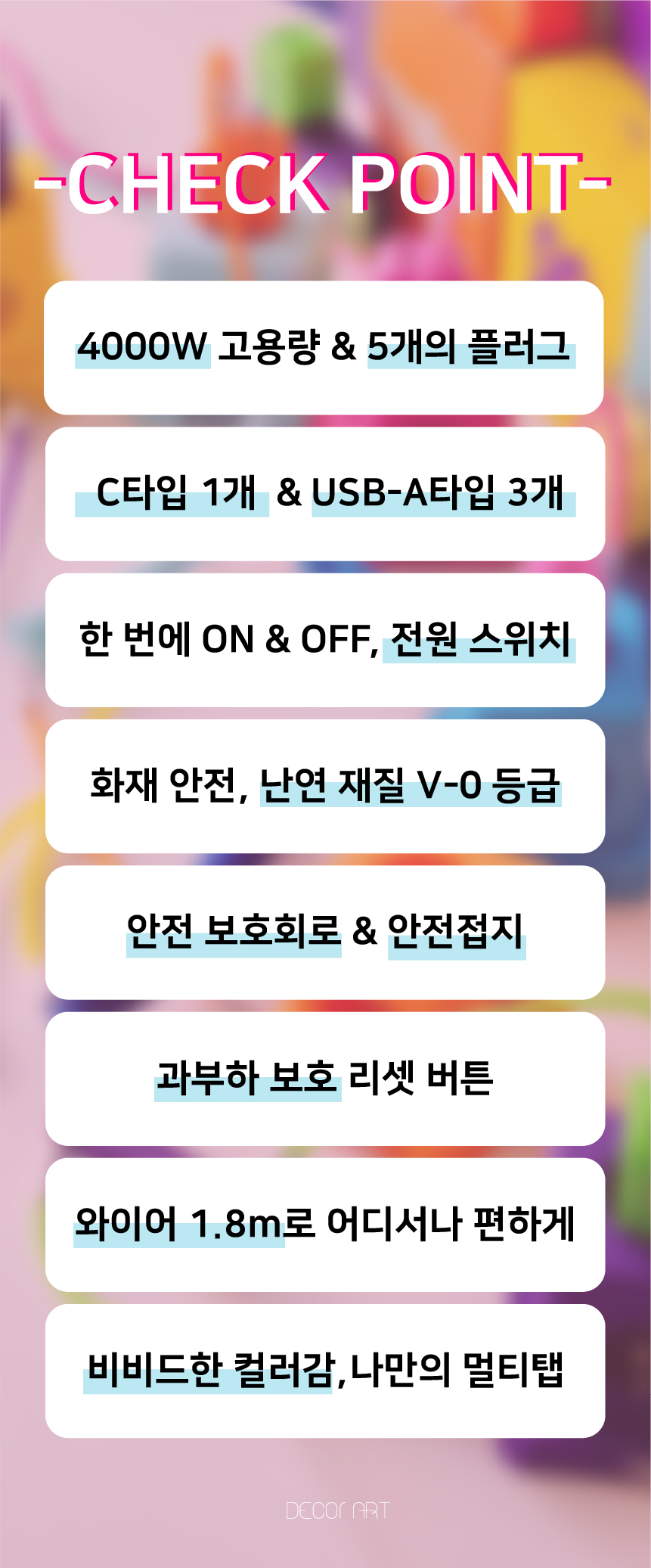 [데코아르] 멜로우 멀티탭 1.8M (5구)