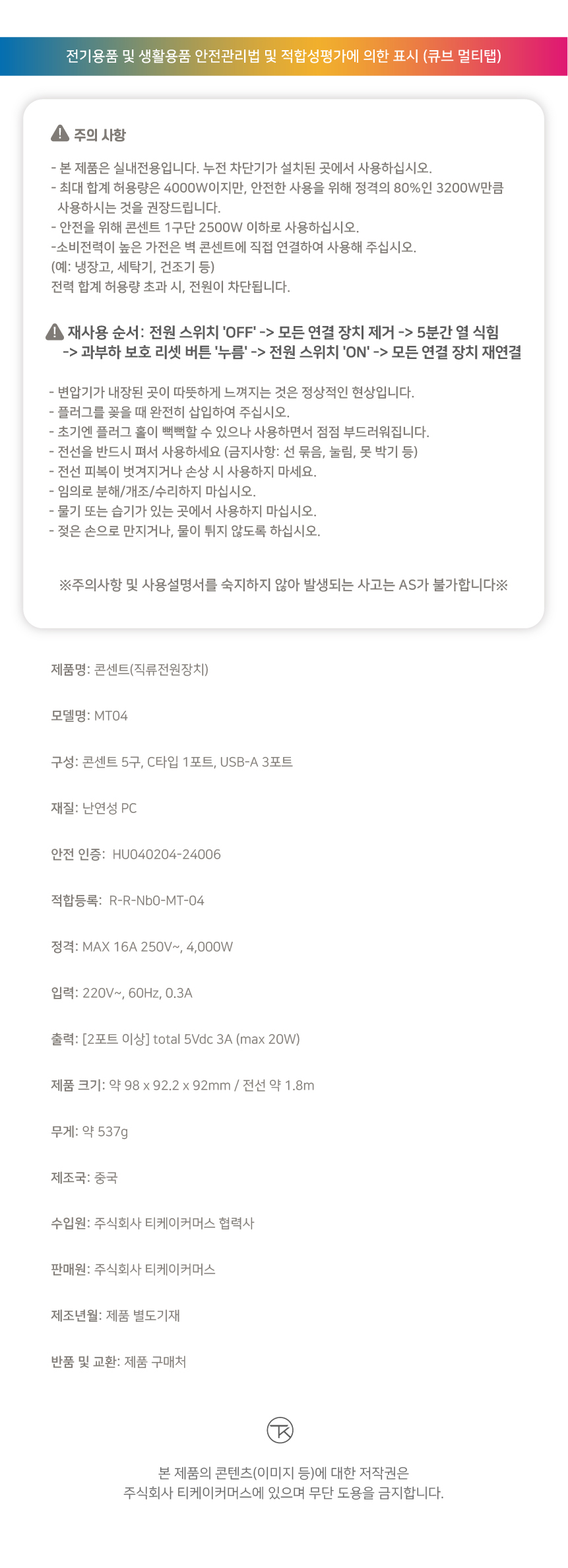 모델명 : 멜로우 멀티탭 1.8M (5구)
