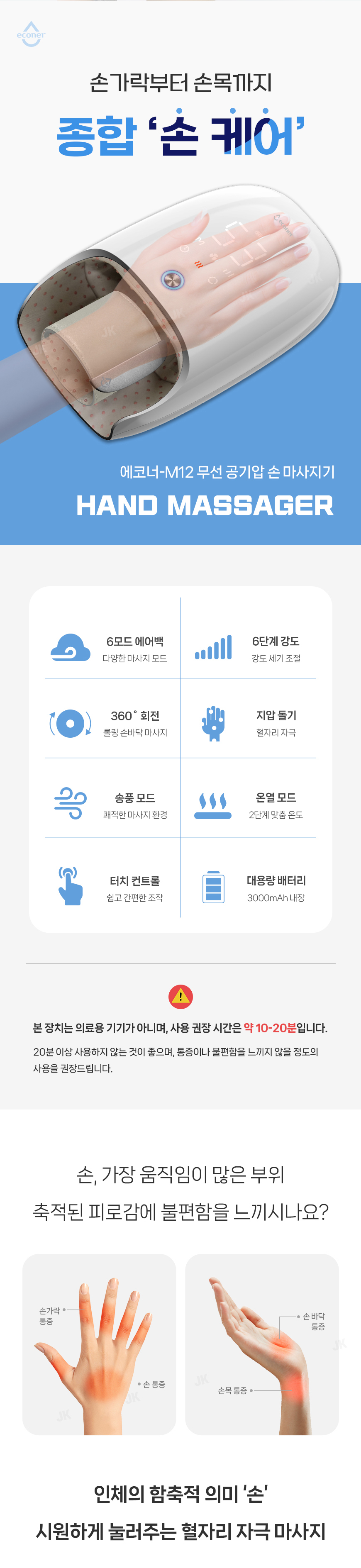 [에코너] M12 무선 공기압 온열 손 마사지기
