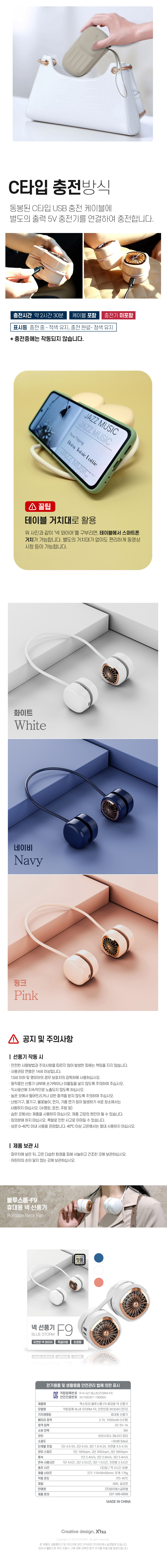 [엑스트라] 블루스톰 F9 초경량 휴대용 넥 와이어 선풍기 (파우치포함)