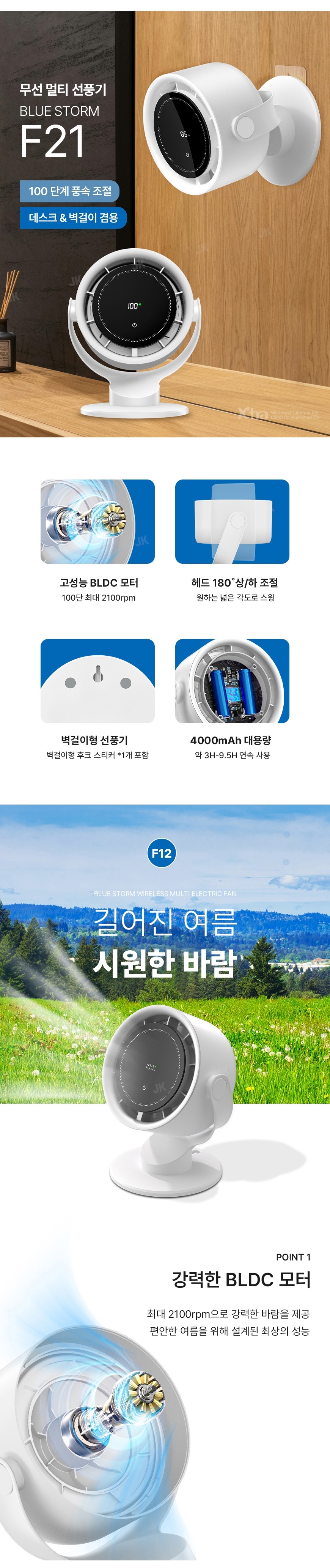 [엑스트라] 블루스톰 F21 무선 100단계 BLDC 초강력 멀티 선풍기