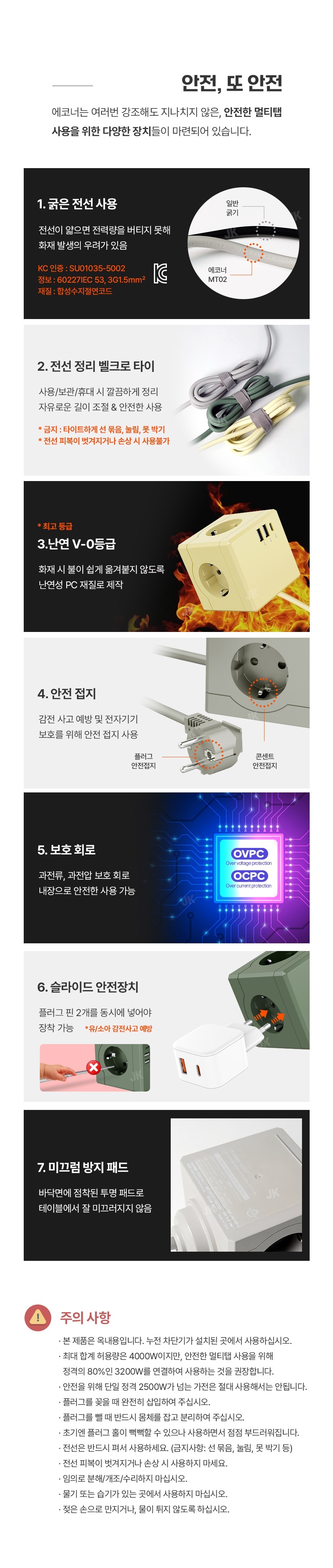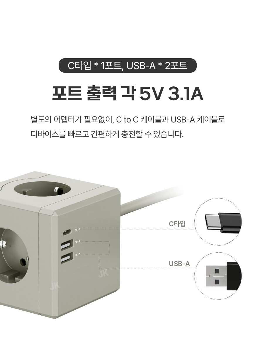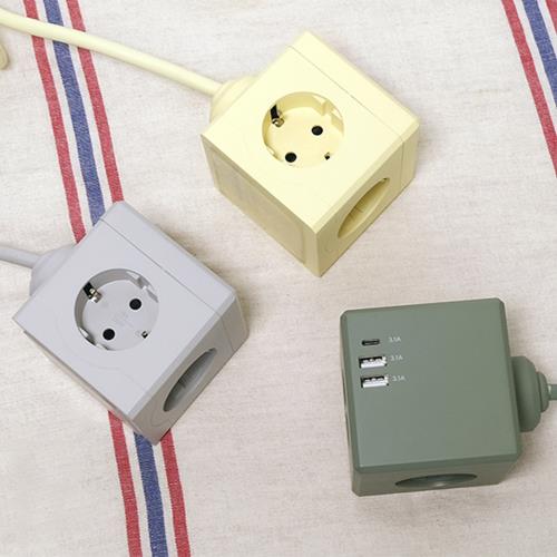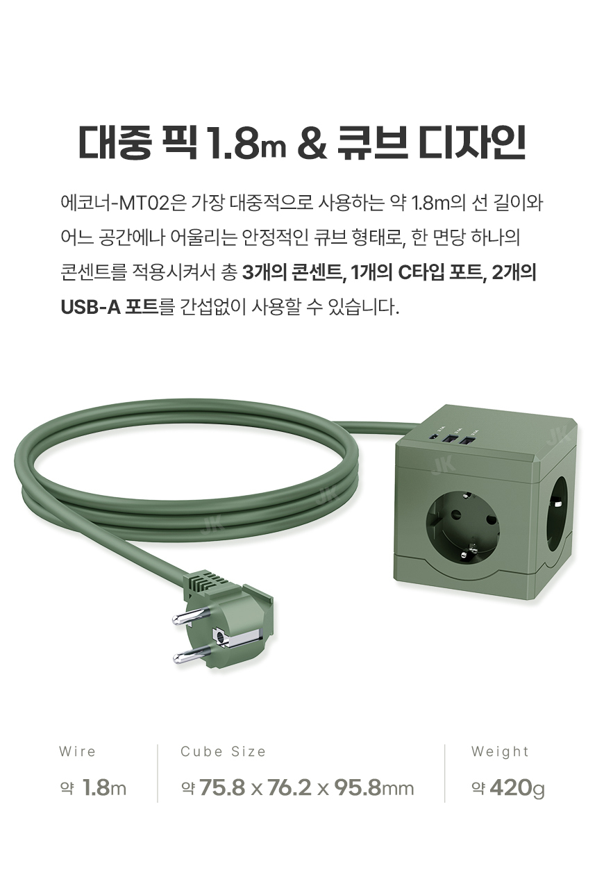 [에코너] MT02 전선형 1.8M 큐브 멀티탭 4000W 고용량 (3구/C타입포트/USB포트)