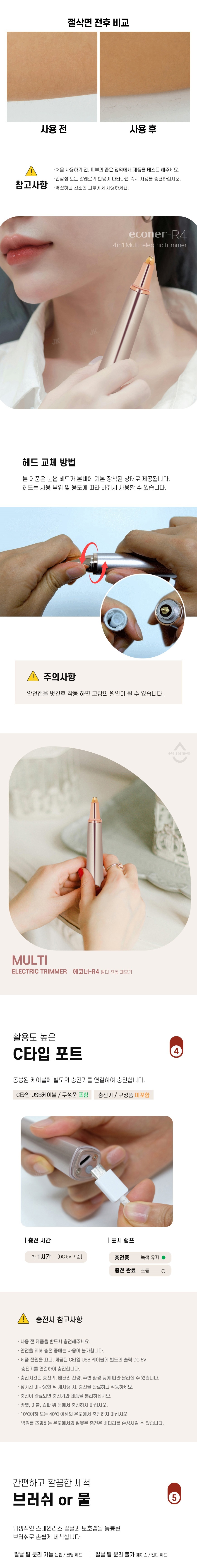 [에코너] R4 4in1 멀티 전동 제모기 (헤드4종/빗살캡3종)