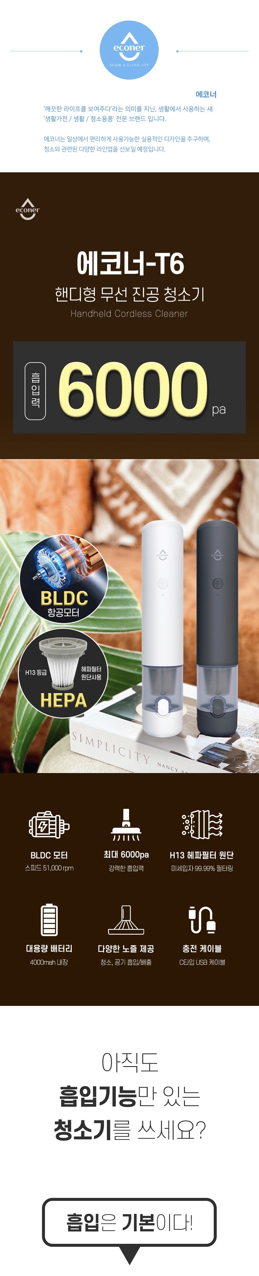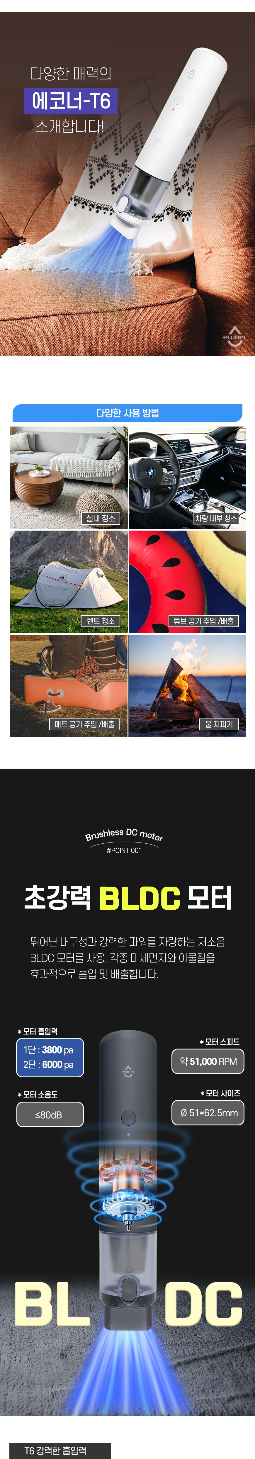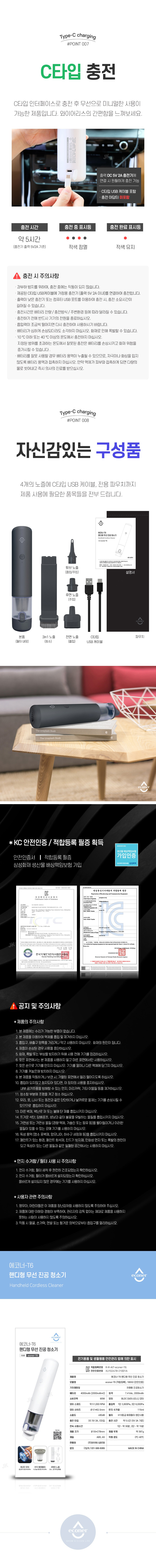 [에코너] T6 핸디형 무선 진공청소기 & 에어펌프 2in1 (튜브노즐포함)