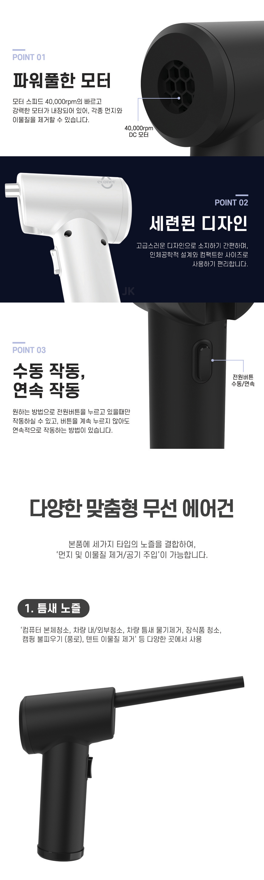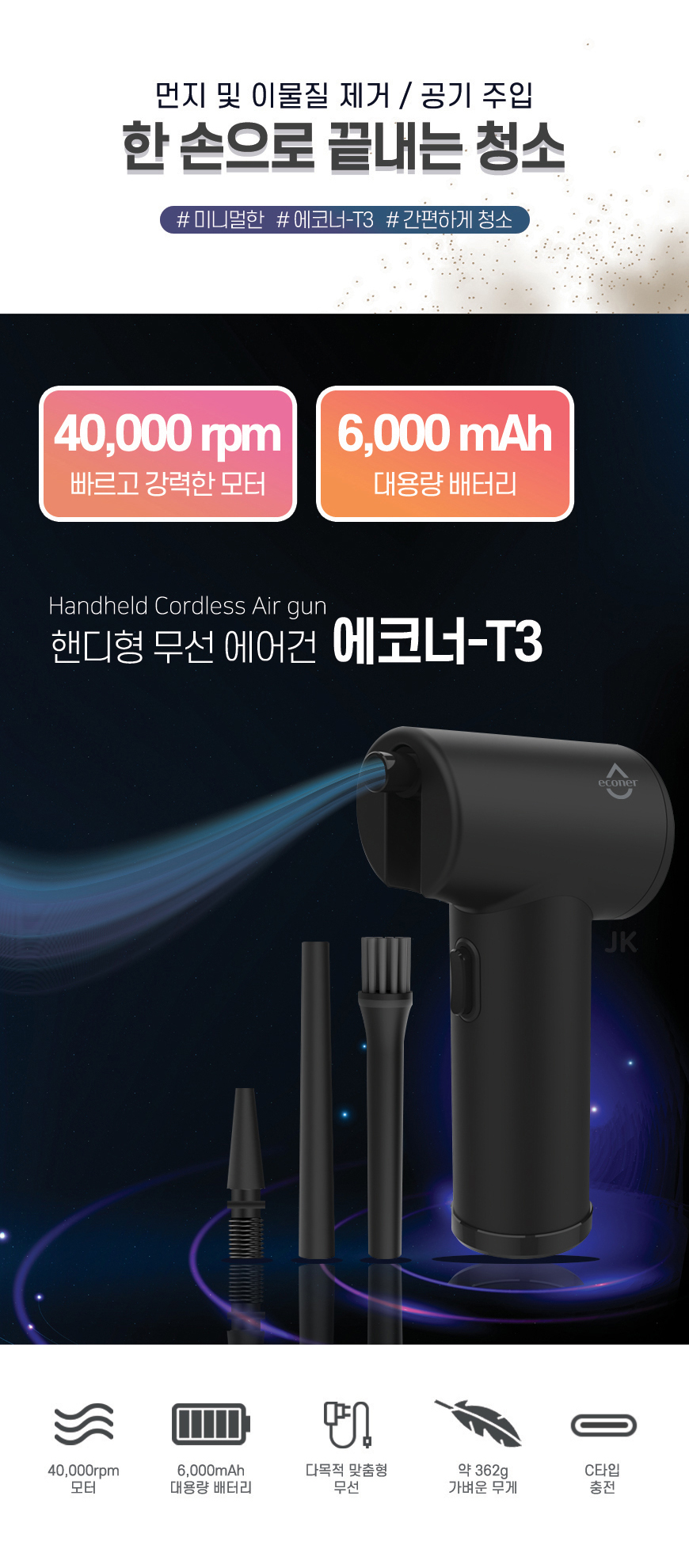 [에코너] T3 만능 2in1 핸디형 강력 무선 에어건 (노즐3종)