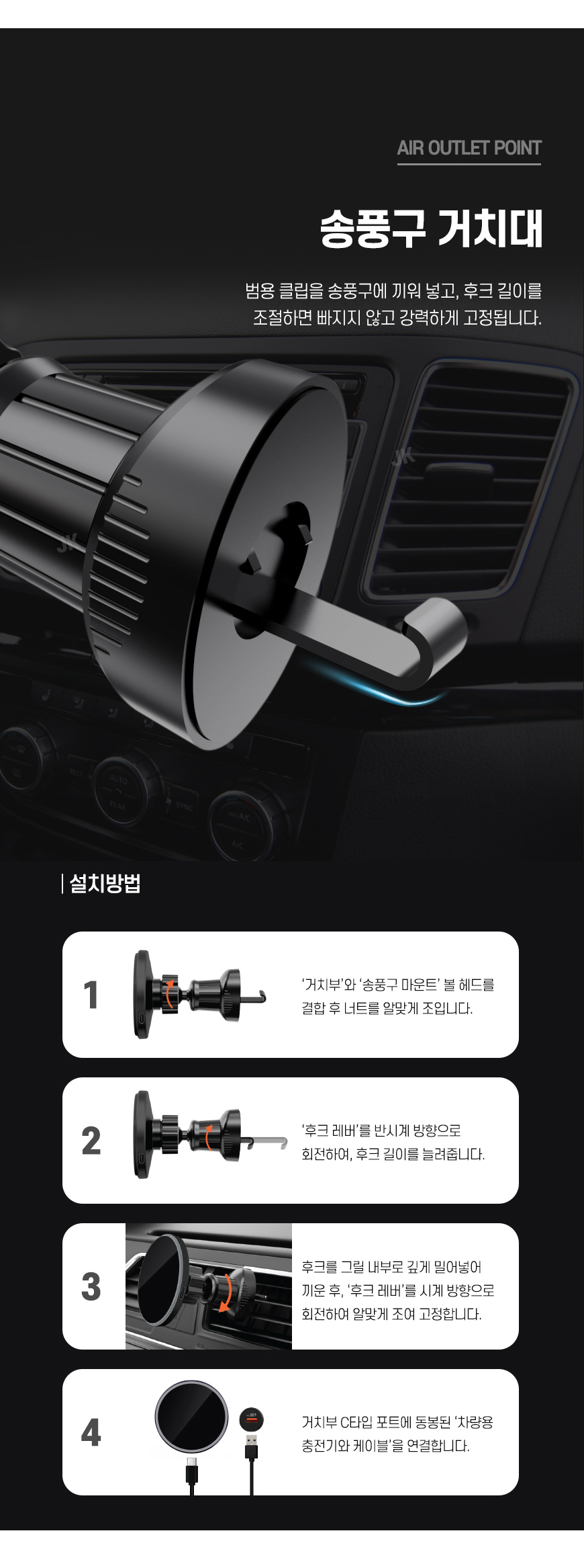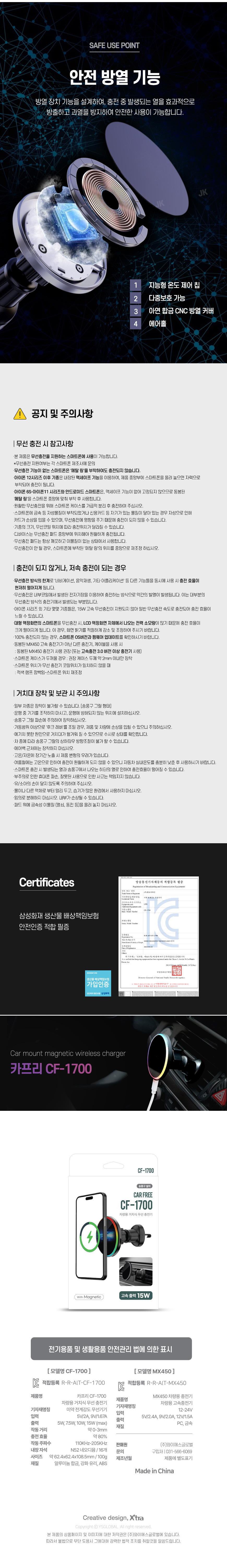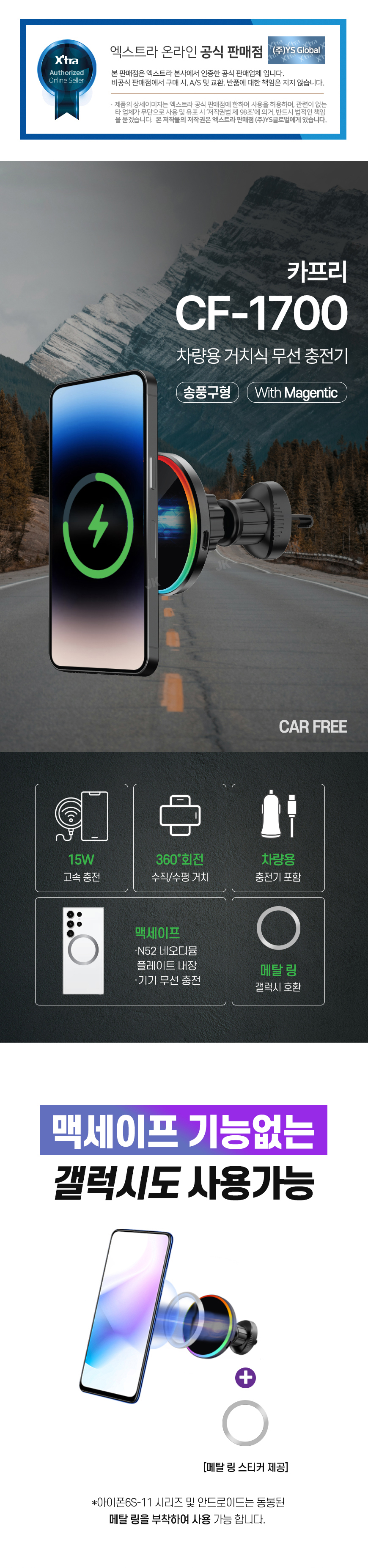 [엑스트라] 카프리 CF-1700 차량용 맥세이프 고속무선충전 거치대 (송풍구설치)