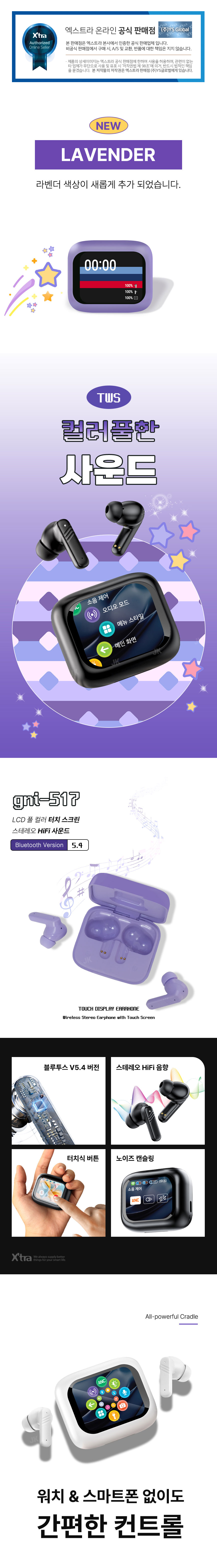 [엑스트라] gni-517 LCD 터치스크린 Hi-Fi 블루투스 무선이어폰