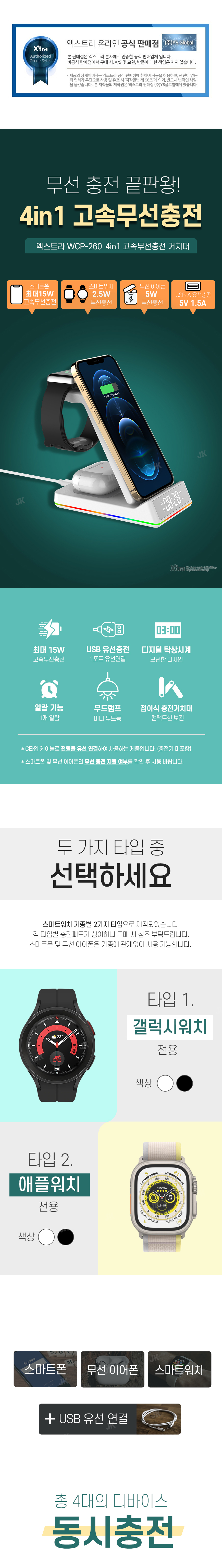 [엑스트라] WCP-260 듀얼코일 4in1 고속무선충전 거치대