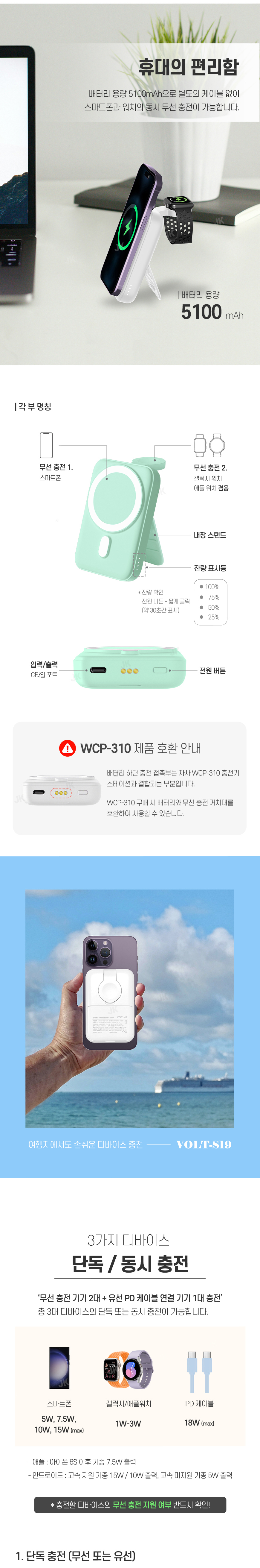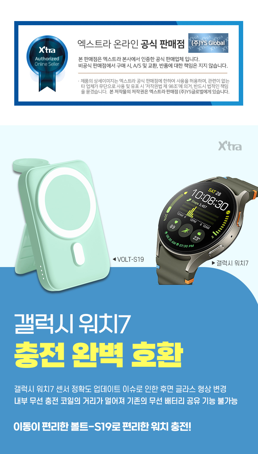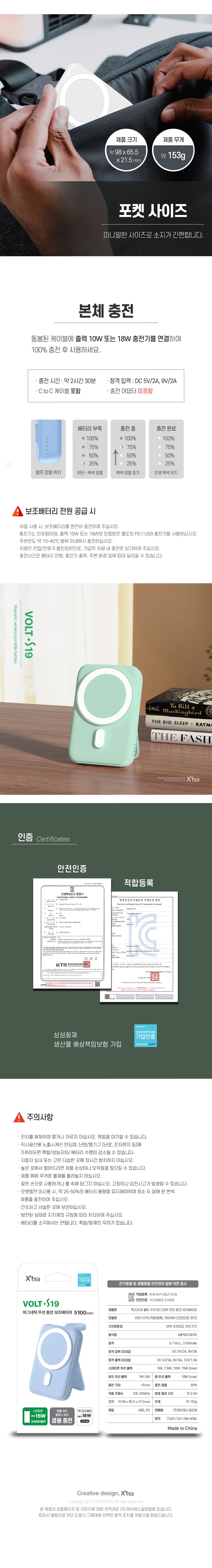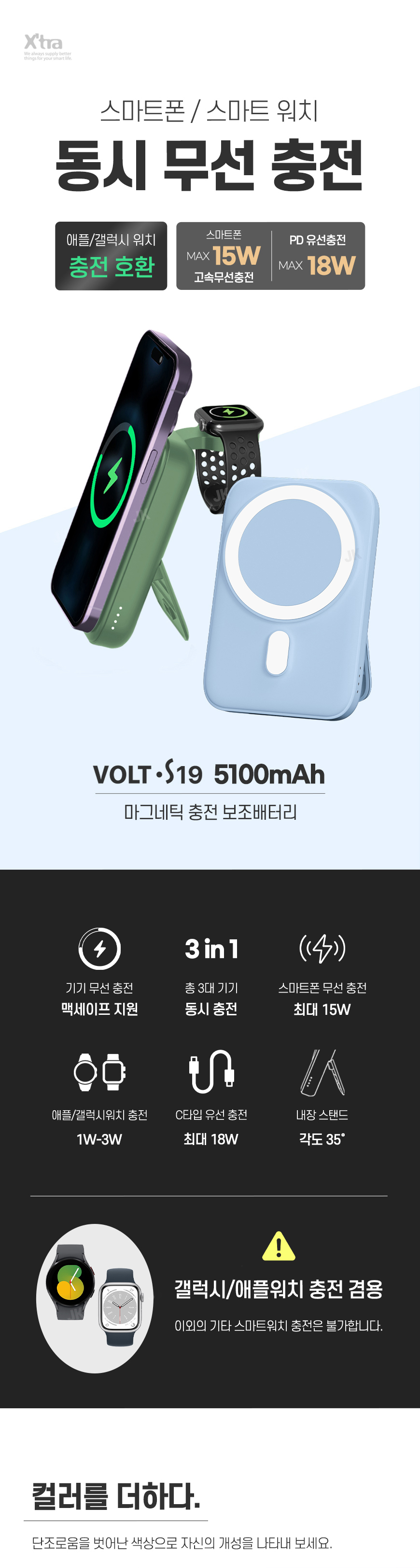 [엑스트라] 볼트 S19 마그네틱 무선 충전 보조배터리 (애플/갤럭시워치 겸용)