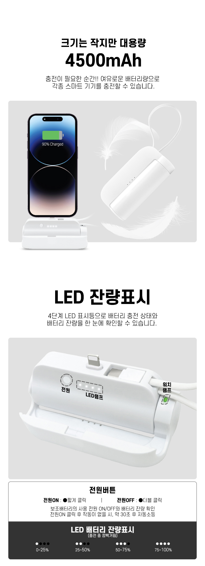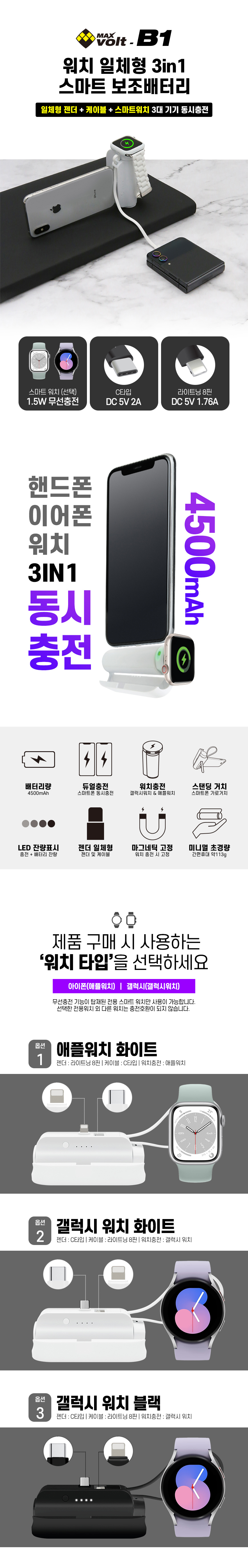 [맥스볼트] B1 스마트워치 무선충전 겸용 도킹형 보조배터리 4500mAh
