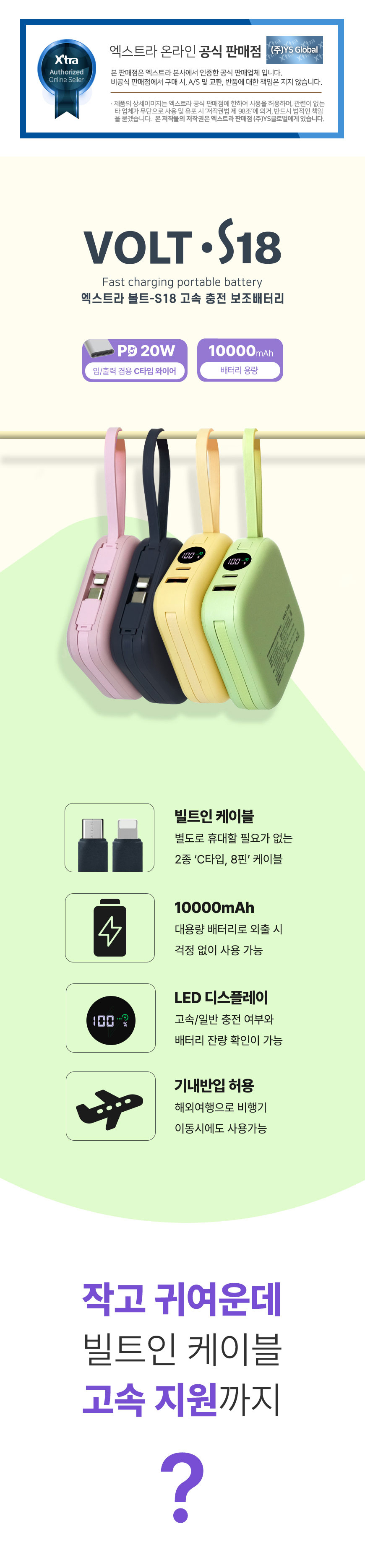 [엑스트라] 볼트 S18 PD포트 20W 듀얼 고속충전 10000mAh 보조배터리