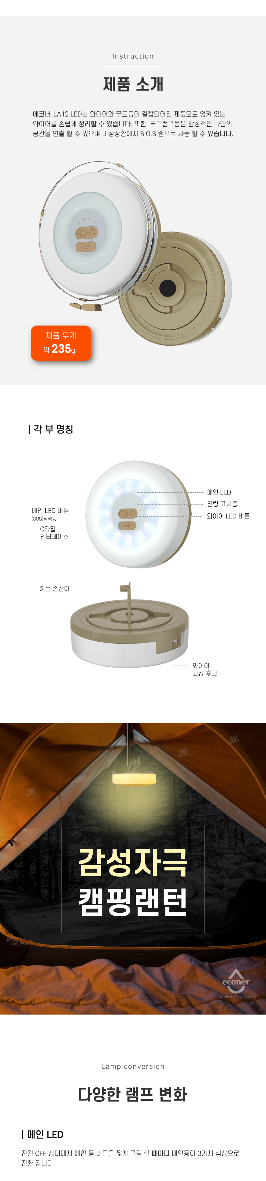 [에코너] LA12 릴타입 무선 LED 와이어 무드등