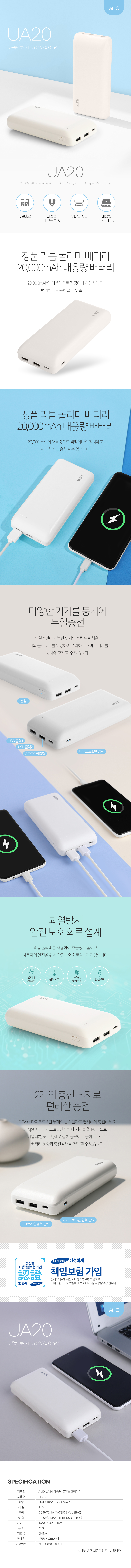 [알리오] ALIO UA20 20000mAh 보조배터리(듀얼충전)